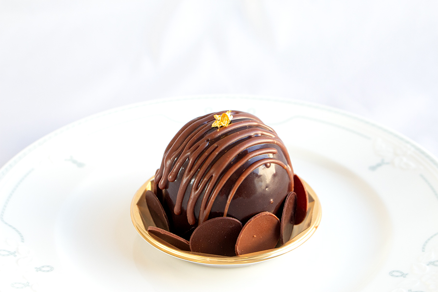 チョコ好きなら、1シーズンに最低1回は食べておきたいスイーツ。スイートチョコとミルクチョコの2種類をムースにして重ね、真ん中には味のアクセントとして、フランボワーズソースを入れました。甘過ぎず、チョコレート本来の苦味や深みを堪能できる一品です。 税込価格 580円 販売期間 10月〜4月頃